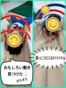 トンネルの大きさを見て、ぶつからないように体勢を変えたり、ユラユラ揺れる感覚を楽しんでくぐりました👍