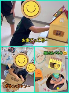 こどもプラス別館のお友達はことのは別館にお邪魔して、様々な形の段ボールで遊んでいましたよ!😆
