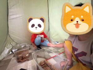 クワガタさんに名前をつけ、カゴの中から出して触ってみたり、エサや木の棒の位置を変えてみたりと、クワガタさんを優しく扱う気持ちがとても嬉しく感じます😊