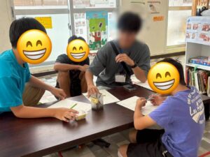 宜野湾教室からメインプレイスまでのバスを自分たちで事前に調べ、路線バスで目的地まで行きました! 普段あまり乗らないと言い、下車する時のボタンを「どのタイミングで押したらいいの?」と緊張する児童もいました☺️