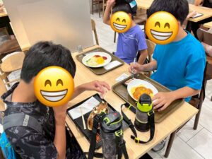 フードコートで食べるお昼ご飯は、自分たちで食事を注文しました✨ 店員さんとのやりとりを頑張って行う姿はとても微笑ましかったです😄