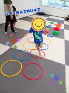 目標物を見ながら跳ぶ事で目のトレーニングと体幹、バランス感覚が養われます!