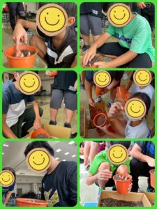 無事に苗植えが完了し、「お家で水をあげたらネギになるの?」と楽しそうに質問する子も見られました☀️