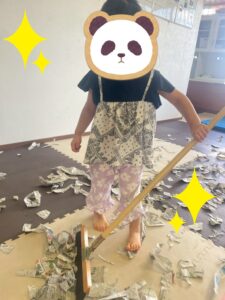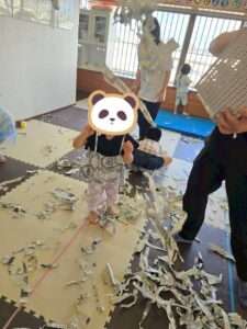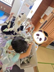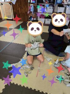 子ども達が大好き「新聞紙ビリビリ」を行いました🎵
