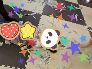 みんなで、「せーの!」でちぎった新聞紙を上に投げ、落ちてくる前にその新聞紙の下に入って隠れて遊ぶなど大盛り上がりでした💕✨