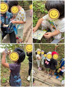シールカードを手にしたこども達は、「見つけた!」「ここにもあるよ!」と楽しそうに声をあげながら、次々と秋の発見をしていました‼