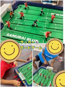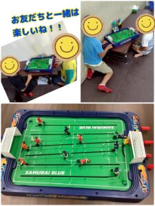 サッカーのボードゲームを職員が寄付してくれて、来たその日から使いたい!と大人気の遊びになりました!