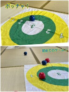 自己紹介後は、ボッチャというゲームをやりました。やる前にルール説明もあり、きちんと聞いていました🎶