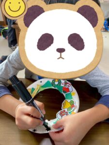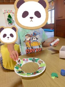 その後は絵を描いたり🎨さらに好きなイラストを貼ったりと、それぞれ独自のクリスマスリースに仕上げて行きます♫