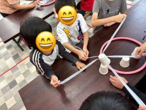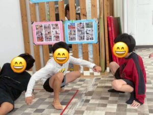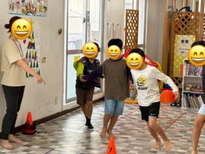 人数が増えてくると回る向きがバラバラになったりでしたが、2回目は落ち着いて他児童と協力してゴールができましたよ☺️