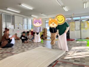 お楽しみ会では、袋とびパン食い競走、福笑い、間違い探し、お菓子のプレゼント🎁交換、映画鑑賞などを楽しみましたよ♪