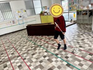 年末大掃除を行いました♪ 普段出来ない窓枠の拭き掃除や、壁拭きを行いました🎶 掃除を始めると、子ども達から自発的に床の拭き掃除や、平均台の拭き掃除をはじめてくれました😊きれいになっていい年を迎える事が出来ました♪