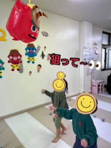 「鬼は〜そと!福は〜うち!」と元気よく豆を投げるこどもたち😆🫘