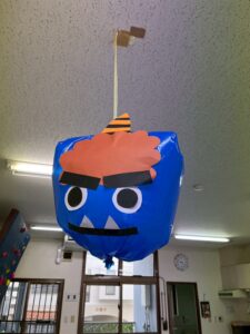 事業所の天井から赤鬼さんと青鬼さんがひょっこり覗いていて、