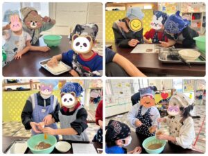 高学年児のいるグループはリードをしてもらう役割をこなしてもらいながら子どもたち同士で助け合って、材料を入れて混ぜてカップに入れてと行程を楽しみながらこなしていきます。その中で「これどうするの?」「難しいからやって」「交代ずつね」など言葉のやり取りも多く見られ、お友達がやりやすいように手を差し伸べたりと助け合う姿がありました(wow)(sparkles)