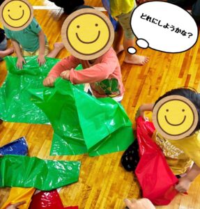 カラービニール袋あそびを行いました。