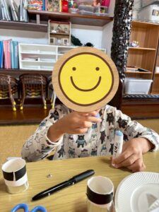 さらに、扇や冠もペタペタと貼り付けて、素敵なおひな様とおだいり様が出来上がっていきました🪭