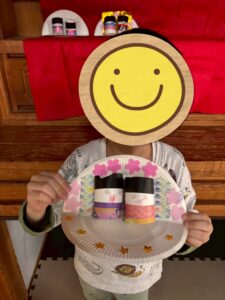 最後に、紙皿の台紙に屏風を貼ることで、ぐっと華やかな作品になりました✨