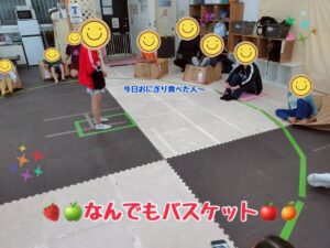 なんでもバスケットが始まると「朝ごはんパン食べた人!」「昨日夜ご飯食べた人!」など鬼になってお題を出すこと、鬼の話をよく聞き楽しんで取り組んでいました😌🌈