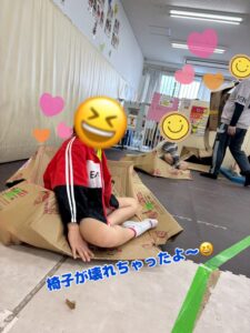 今回のなんでもバスケットではダンボールを椅子に見立てて行いました😆!