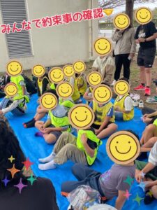 グループに分かれて車で出発し、到着後は水分を補給しみんなで約束事の確認です🌱
